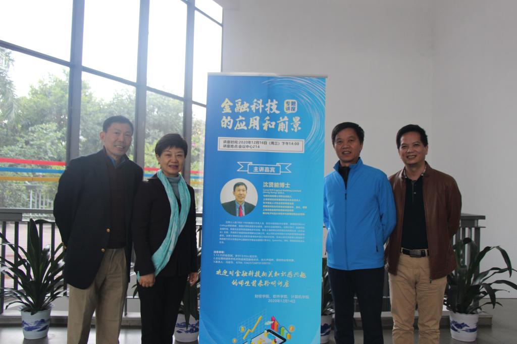 12月16日下午,勾股科技有限公司联合创始人、副总裁,美国雪城大学电子工程学博士沈贤能,应财经学院邀请来校作“金融科技的应用和前景”专题讲座。学校党委书记刘锦,党委委员、副校长姚学清,与财经学院、软件学院、计算机学院的领导、专任教师,以及金融管理专业2020级全体学生近300人共同聆听了讲座。