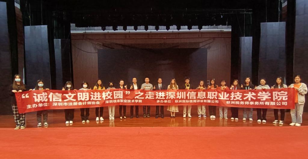 3月24日下午,由财经学院和深圳市注册会计师协会共同主办,联洲国际信用评级有限公司、联洲税务师事务所承办的“诚信文明进校园”主题讲座活动在学校千人礼堂举行,财经学院会计和会计信息管理专业800多名师生汇聚一堂,共同上了一堂“诚信课”。深圳市注册会计师协会秘书长刘雪生先生进行了题为“诚信建设 牢筑会计行业发展的基石”的主题分享。