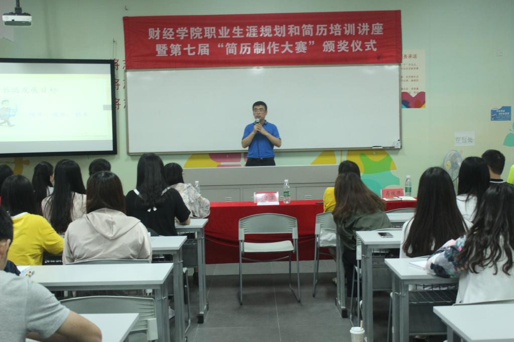 5月10日下午,财经学院在学思楼举行了职业生涯规划和简历培训讲座暨第七届“简历制作大赛”颁奖仪式。本次讲座邀请到了财经学院党总支书记张立军作为主讲嘉宾,学生办全体老师及120余名学生参加活动。
